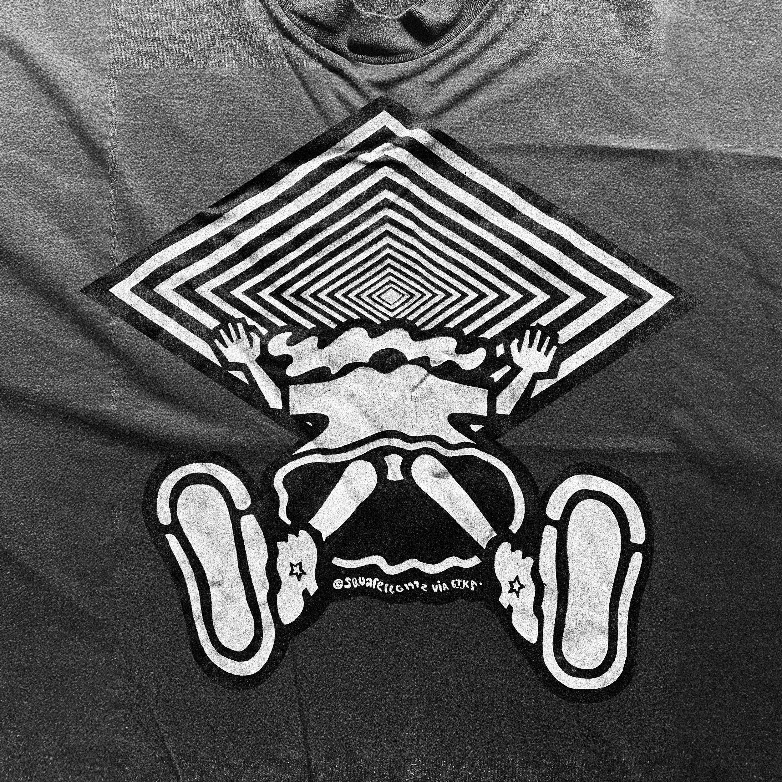 I enjoy creating images that can communicate an idea and/or a feeling in a bold and fun way. The ‘Vortex’ illustration (first image on the orange background) was originally a T-Shirt design for the band EMF. It was my first foray into the world of professional design. I was still at college and drew the original concepts on bits of paper I found during my summer job making Ribena. Despite the band liking the designs, the management wanted to go in a different direction. It was my first real-world creative lesson.